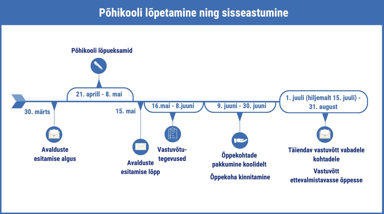 Vastuvõtuga seotud tegevusi alustatakse pärast põhikooli lõpueksamite tulemuste selgumist, kuid mitte enne 16. maid. Sisseastumisvestlused toimuvad ajavahemikus 4.–8. juuni 2026.