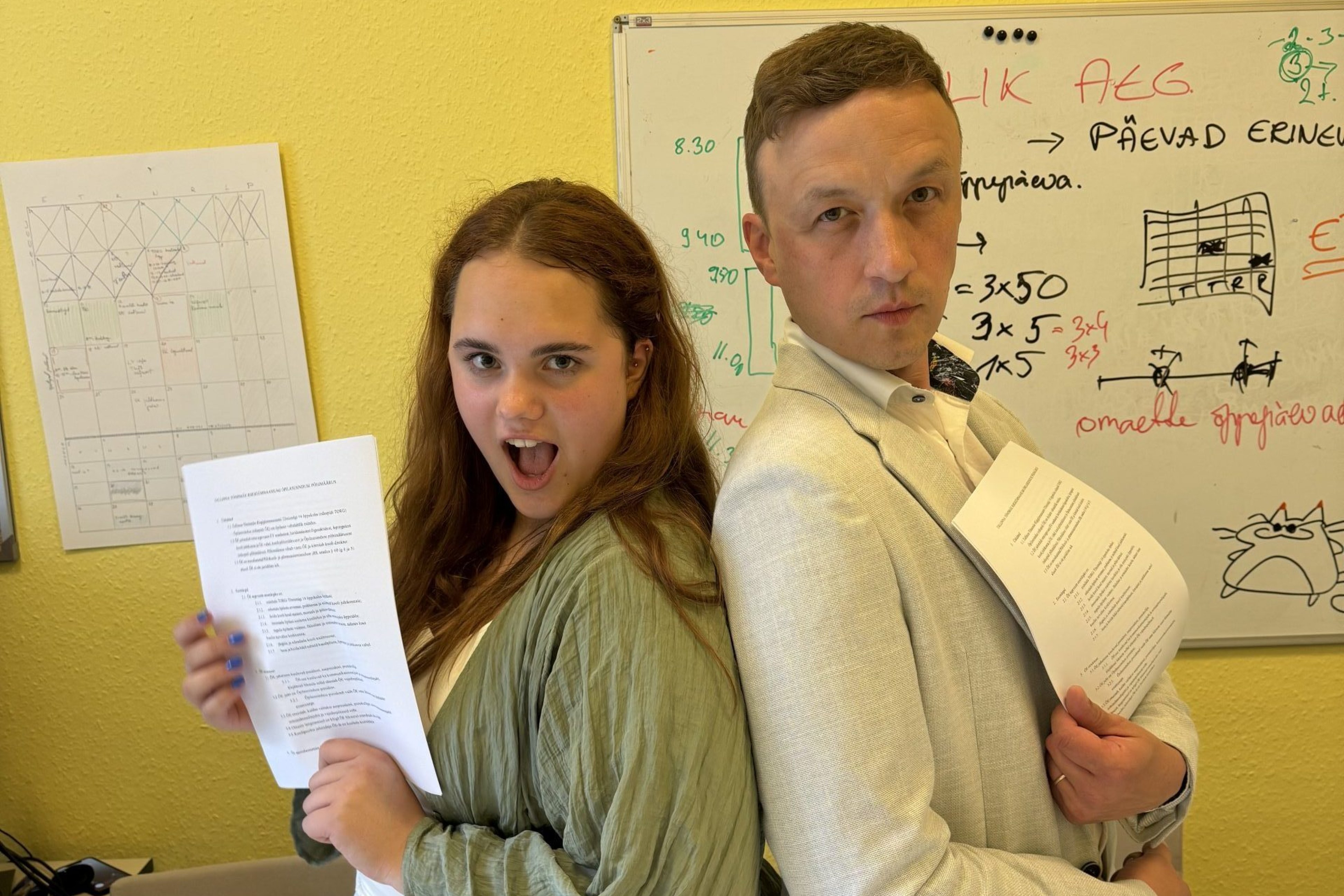 TORGi koolijuht Alo Savi ja õpilasesinduse president Mia-Ly Läänesaar allkirjastasid juuni algul kooli õpilasesinduse põhimääruse.