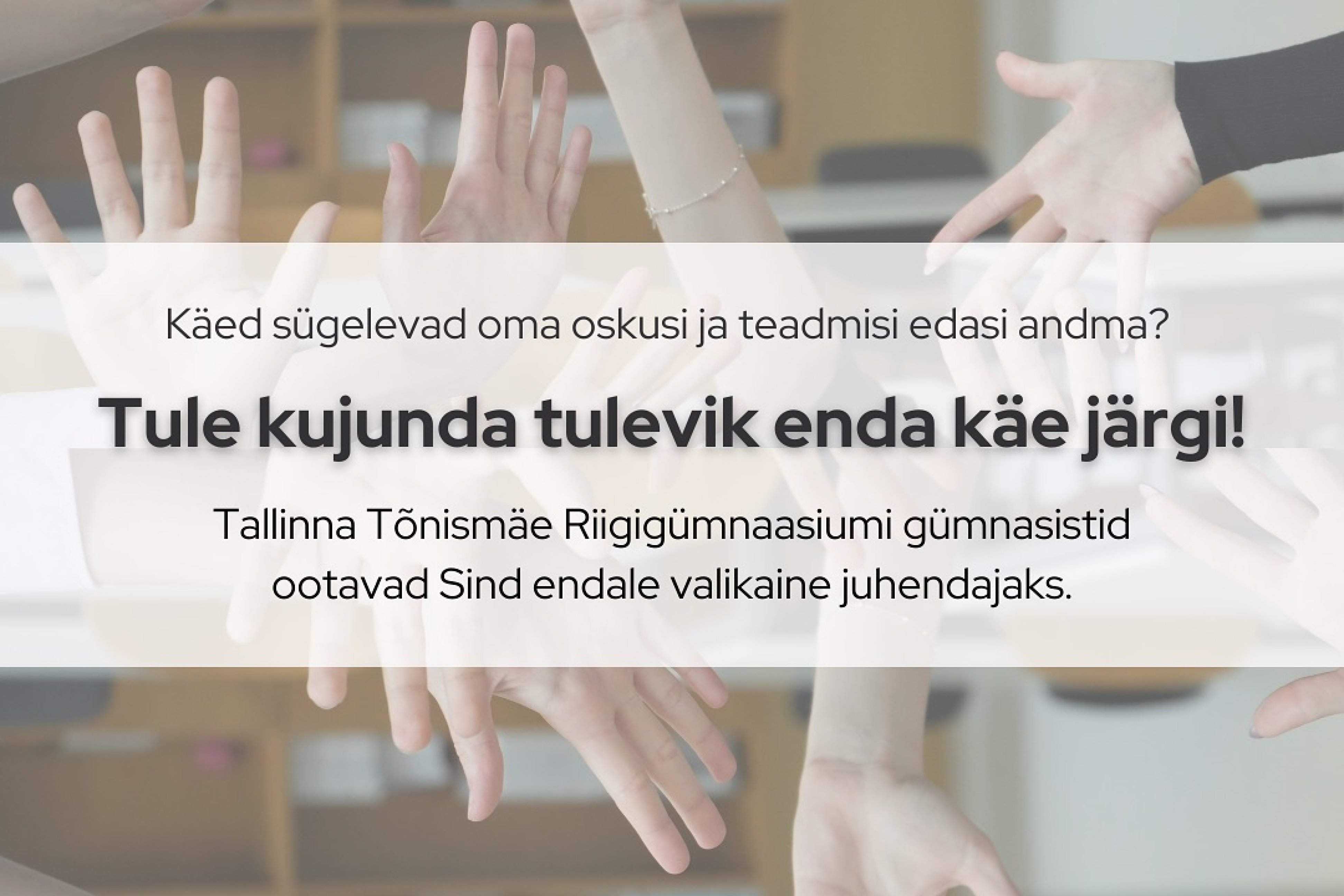 Tõnismäe riigigümnaasium ootab oma valdkonna eksperte kandideerima valikkursuste õpetajaks. Oodatud on eelkõige praktilised valikained ehk kursused loodusteadustest või patsipunumisest keraamika ja rahanduseni. Oodatud on ka teatriringi, bändi ning heli- ja valgustehnika juhendajad.