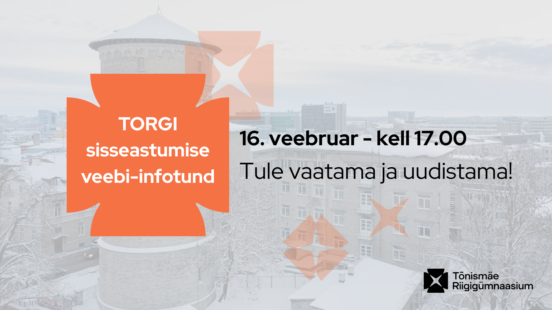 Sisseastumise veebiinfotund õppeaastaks 2026/27 toimub 16. veebruaril kell 17.00. Infotunnis tutvustatakse TORGi õppetööd, koolielu- ja korraldust ning tänavust sisseastumisprotsessi.